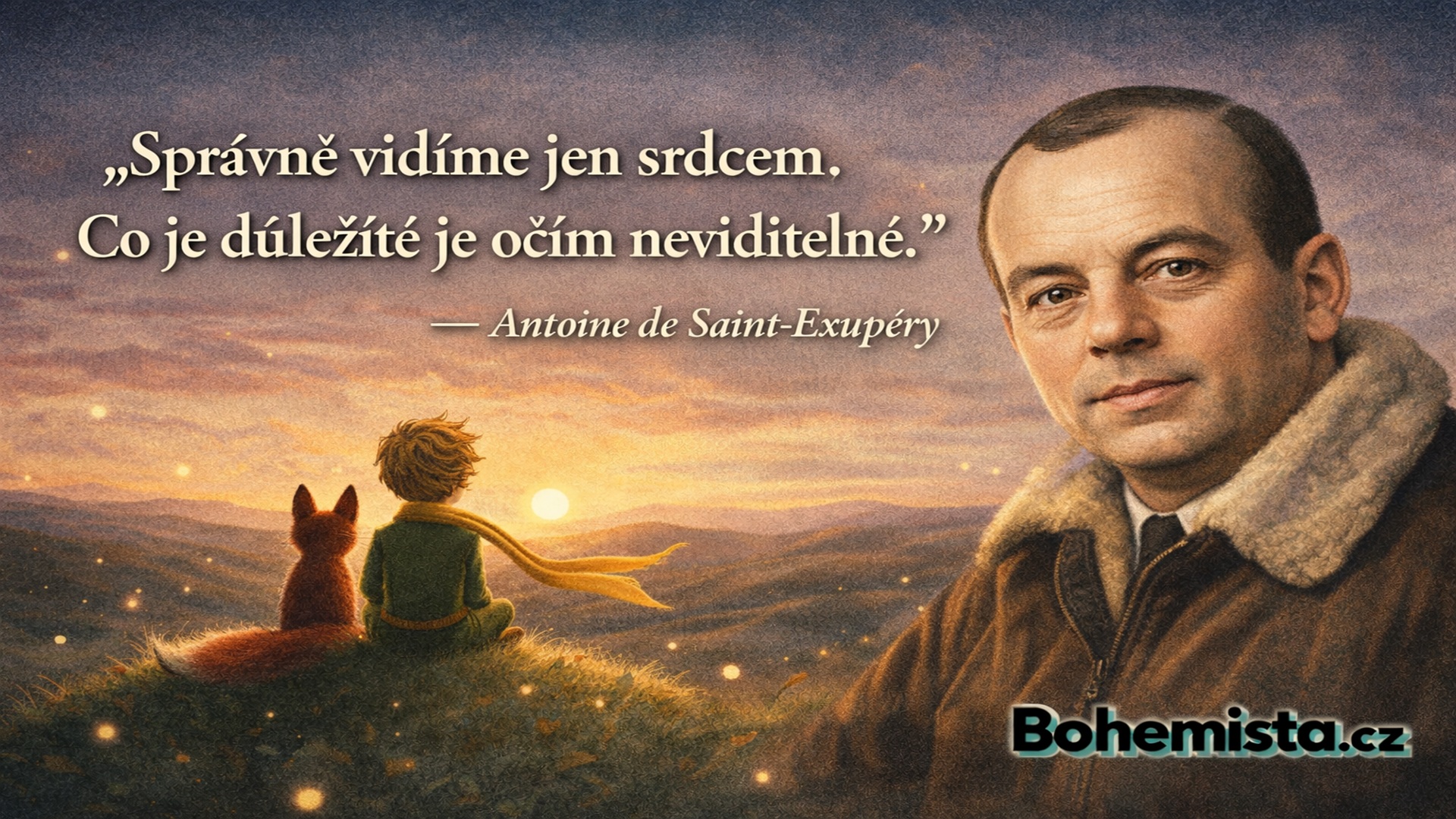 Antoine de Saint-Exupéry zahynul během průzkumného letu ve druhé světové válce. Jeho zmizení nad mořem má téměř symbolický rozměr, stejně jako jeho dílo. Zanechal po sobě slova, která nejsou hlasitá ani okázalá, ale tichá a trvalá. Připomínají nám, že to nejpodstatnější v životě často zůstává skryté a že bez srdce nelze vidět vůbec nic.