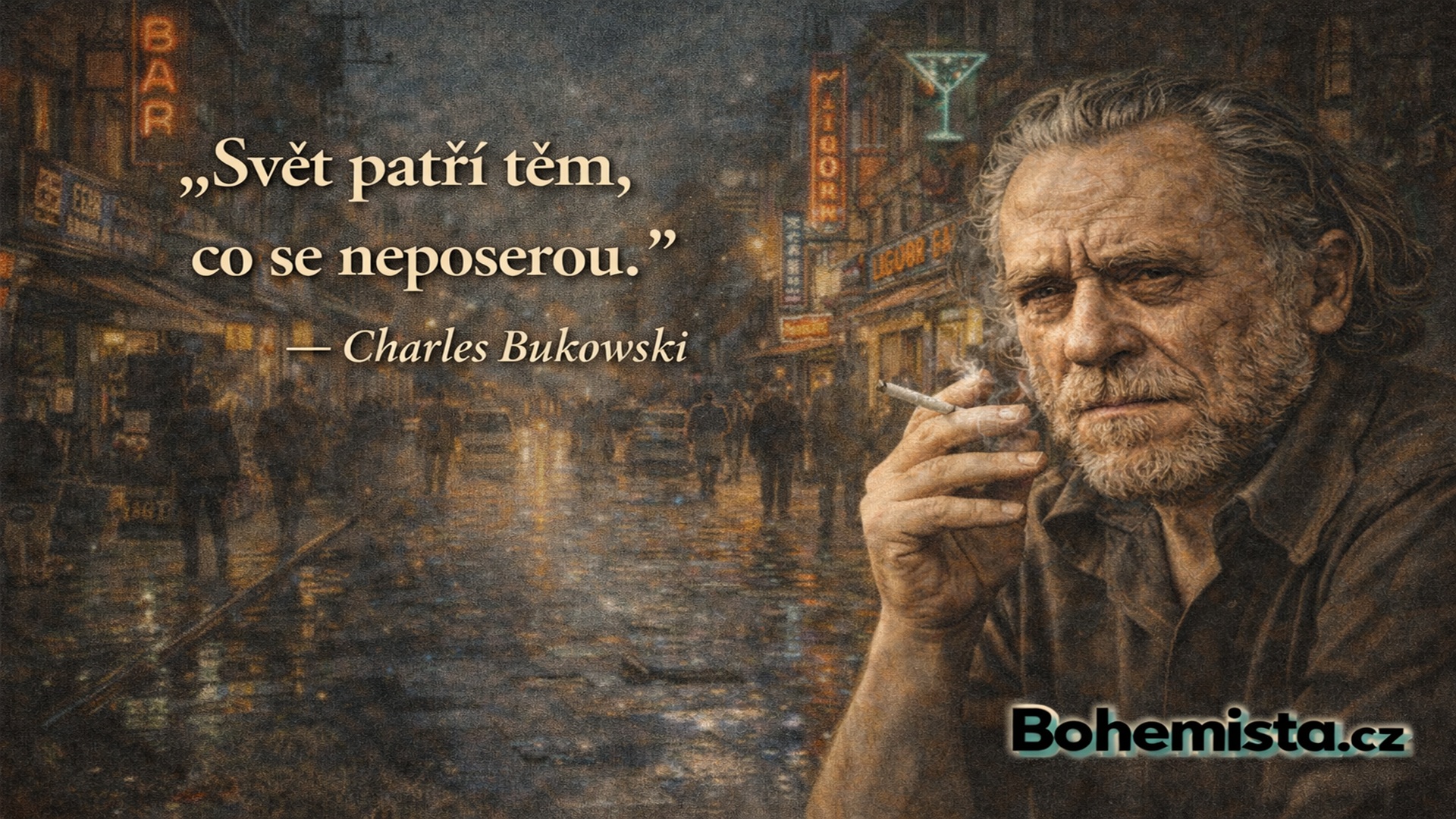 Citát „Svět patří těm, co se neposerou“ přesně vystihuje jeho životní filozofii. Nejde o hrubost samoúčelnou, ale o odmítnutí strachu, přetvářky a pohodlné pasivity. Bukowski věřil, že svět není spravedlivý a že život často bolí, ale zároveň pohrdal lidmi, kteří se vzdávají dřív, než vůbec začnou. Odvaha jít dál, i když je to nepohodlné, byla pro něj zásadní hodnotou.